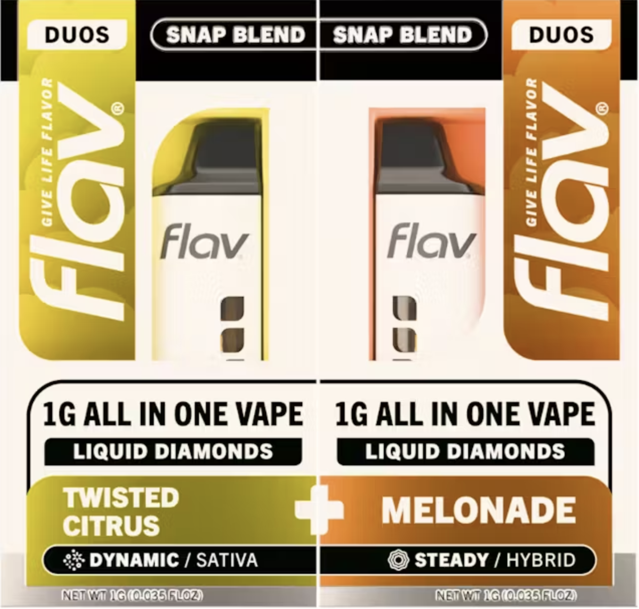 Double the Flav. Double the Diamonds. Meet the Flav Duos — a next-gen Liquid Diamond vape pen that lets you mix, match, and magnetize your sesh. Designed with a unique magnetic dual-vape system, Flav Duos gives you the power to combine two different strains for a custom blend, or double down on your favorite for a more potent punch. Powered by ultra-refined Liquid Diamonds, every hit delivers a smooth, terpene-rich cloud.